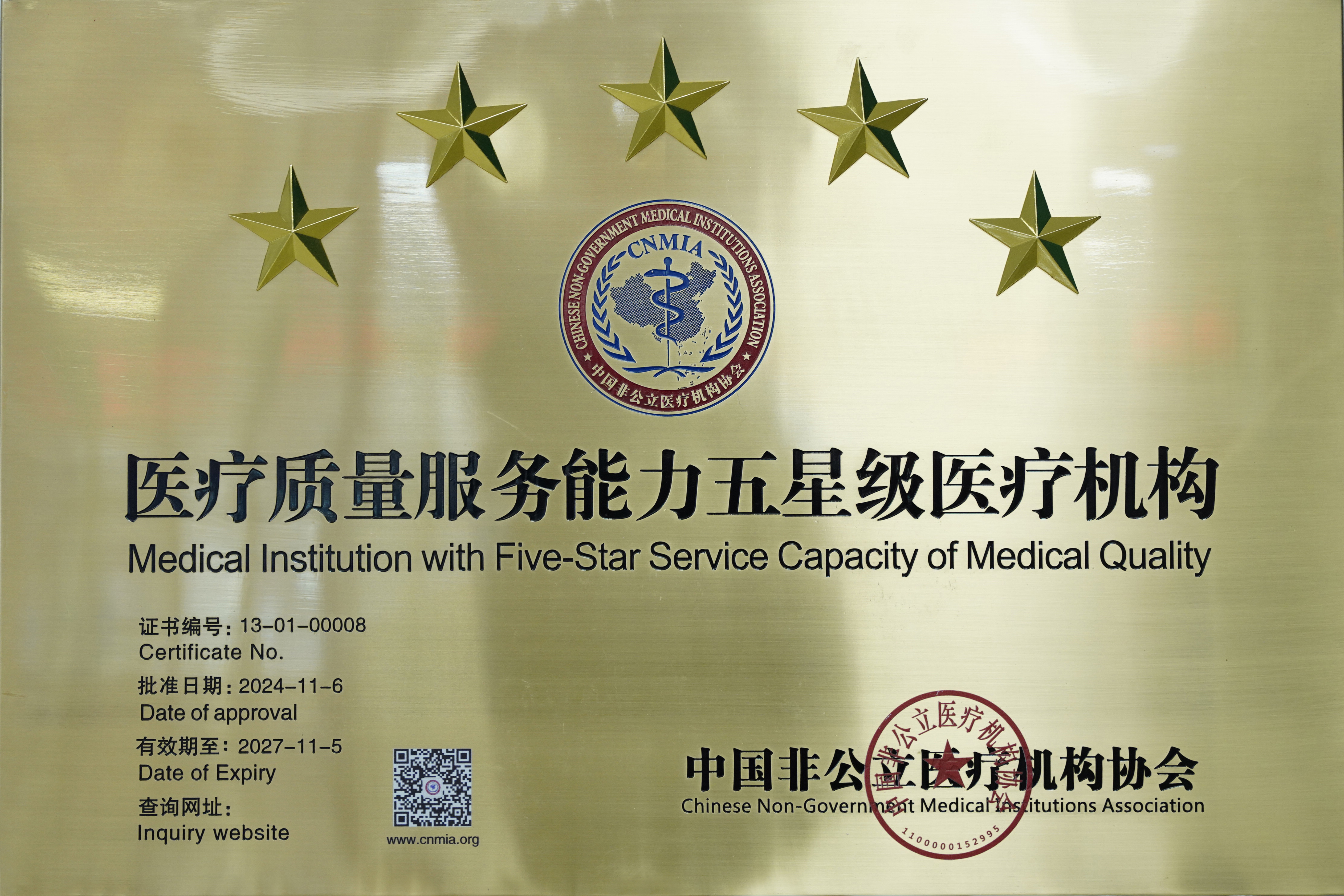 河北燕達陸道培醫(yī)院順利通過三年一度的國家行業(yè)評價現場續(xù)評復核工作,連續(xù)獲得“醫(yī)療質量服務能力五星級醫(yī)療機構”稱號。