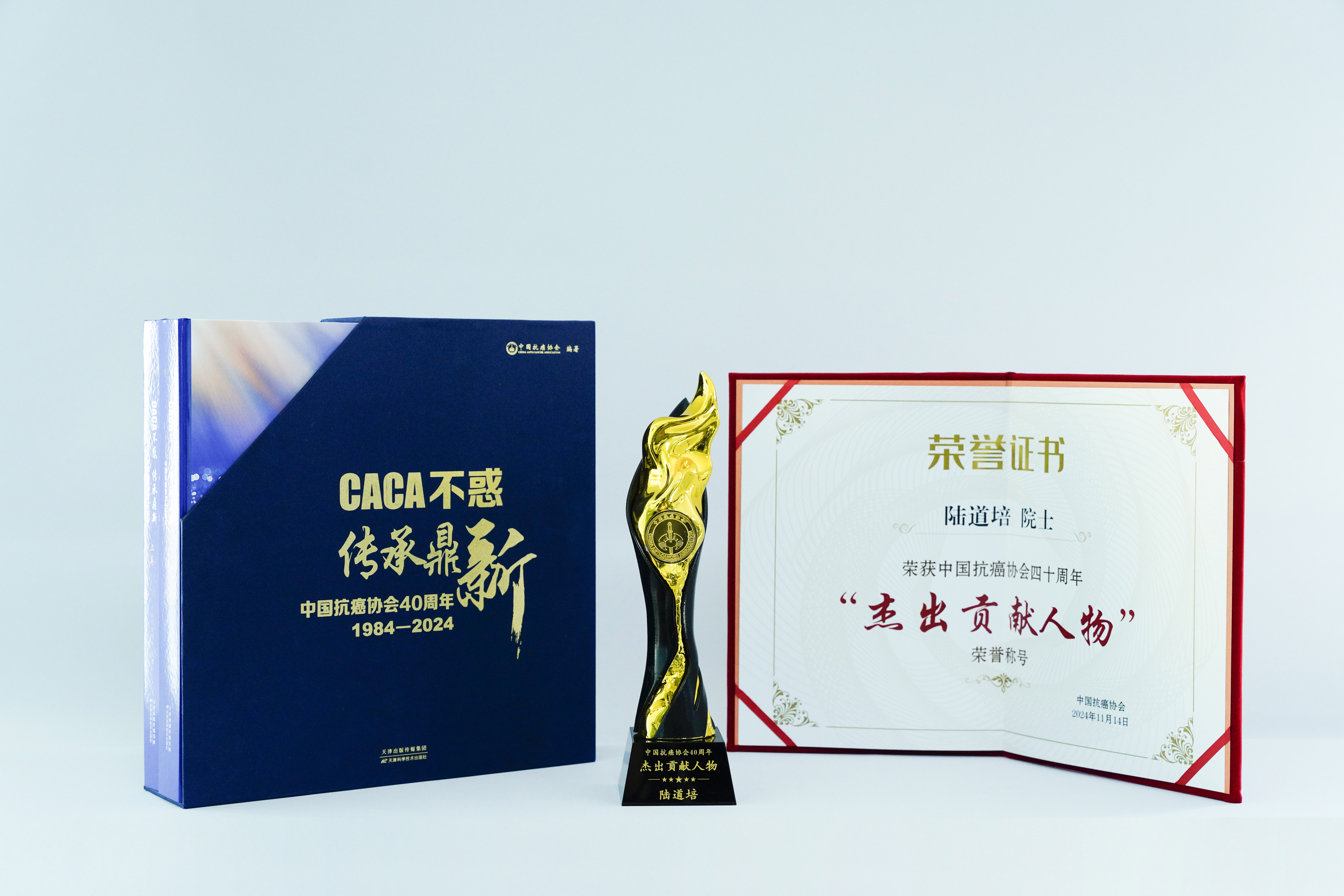中國抗癌協(xié)會在2024中國整合腫瘤學科普大會暨中國抗癌協(xié)會成立40周年慶典活動上,授予陸道培院士“中國抗癌協(xié)會杰出貢獻人物”稱號,并贈送《中...